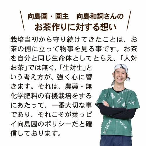 他の画像を見る 心から「ほっ」とするお茶をお届けします 葉っピイ向島園 JAS認定 無農薬 「向島園 煎茶 50g」(緑茶・静岡産) ¥ 1,080 税込 向島園の煎茶は無農薬・無化学肥料で栽培され、野生味の中にも香り高くほのかな甘味を含んだおいしいお茶です。 カートに入れる お気に入りに登録する