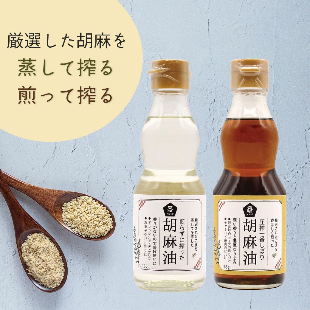 他の画像を見る 精選された胡麻を使用 食用油 ムソー 胡麻油 ¥ 864 税込 〜 ¥ 税込 厳選されたごまを使用して作られた胡麻油。ごまの香りが少ない透明の胡麻油と、香り高い茶色の胡麻油の2種類をご用意しました。お料理に合わせて使い分けてくださいね。 詳細を見る お気に入りに登録する