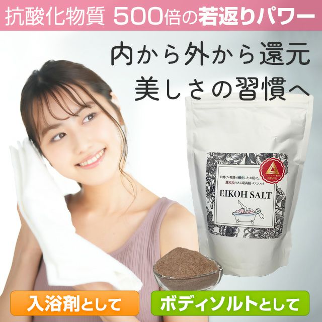 他の画像を見る 内から外から還元 美しさの習慣へ EIKOH SALT・エイコウソルト(インド・パキスタンの岩塩・ハーブ入り) セット割引 ¥ 1,650 税込 〜 ¥ 税込 EIKOH SALT(エイコウ・ソルト)岩塩バスソルトは、アーユルベーダの技術の基、ハーブと一緒に焼成した還元力が高いお塩です。ミネラルが豊富で還元力があるから、体の芯から温まりゆっくり入浴することで若々しさと元気がもらえます。 詳細を見る お気に入りに登録する