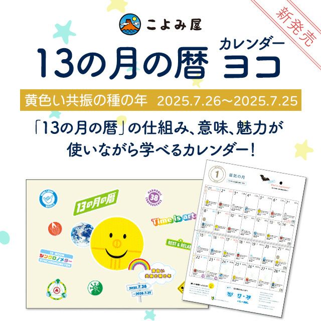 「13の月の暦」は、マヤ暦の時間の知恵を基に新しく創られたカレンダーです。忙しい現代を生きる私たちが、自然や宇宙の時間とのつながりを見つけられるようデザインされています。