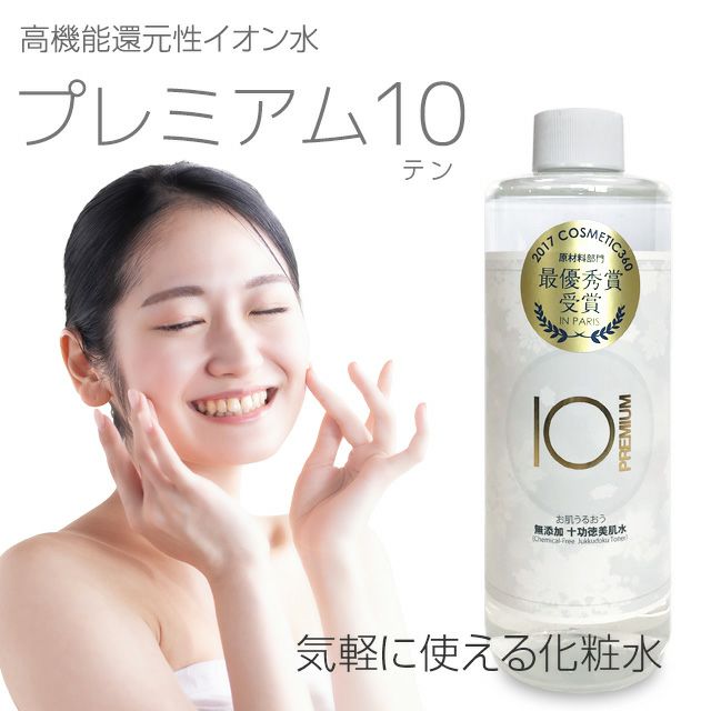 水だけを原料に特殊な特許製法で開発された高機能還元性イオン水「プレミアム10」。