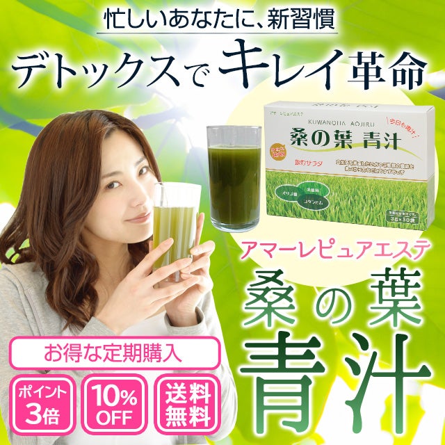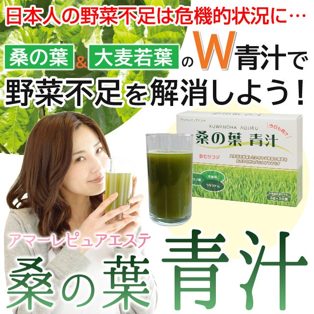 他の画像を見る 【定期購入】【ポイント3倍・10%OFF】アマーレピュアエステ 桑の葉青汁【送料無料】 ポイント3倍 10%OFF 定期販売 定期購入 1回あたり ¥ 3,790 税込 野菜不足の日本人におすすめ!「桑の葉青汁」は、野菜不足を補うために、国産の桑の葉と大麦若葉と2つの青汁を使っています。 詳細を見る お気に入りに登録する