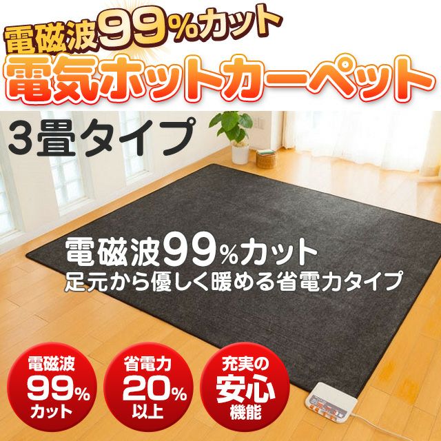 他の画像を見る 電磁波カットホットカーペット【3畳・本体のみ】【ゼンケン】 ¥ 50,600 税込 リビングやダイニングを足元から優しく暖める高性能なホットカーペット。電磁波99%をカットし、「電力1/3運転」「ひかえめモード(自動電力調整運転機能)」「7面切替運転」を搭載。メーカー従来製品より約20%の省電力を実現しました。 カートに入れる お気に入りに登録する