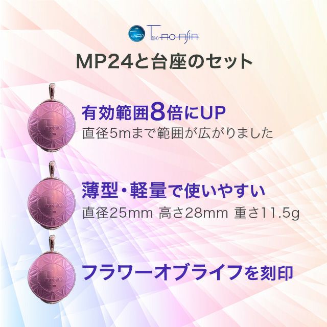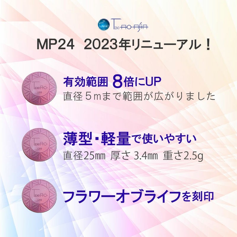 他の画像を見る 2023年にリニューアルしてパワーアップ! テクノAO MP24 (スマートフォン・小型家電用)電磁波対策 ¥ 14,400 税込 スマホや小型家電からの電磁波を補正し、身体本来のリズムを守るMP24。簡単に貼り付けて使える便利アイテムです。 カートに入れる お気に入りに登録する