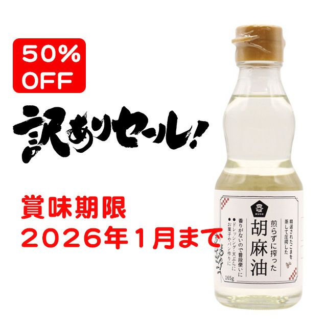 精選された胡麻を使用(ムソー) 【訳あり・50%OFF】【賞味期限2026年1月】煎らずに搾った 胡麻油・165g(透明)