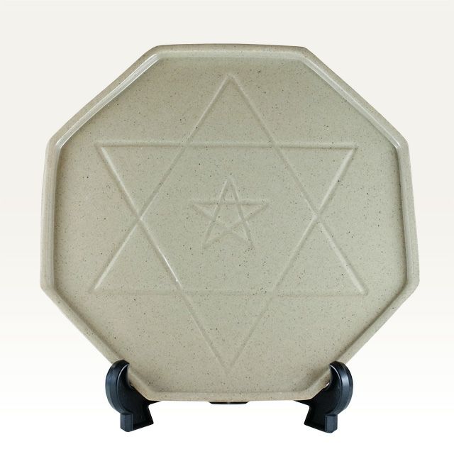 レンジプレート宙の図形には、五芒星、六芒星、八角形、中心点、○十図形などが意図して使われており、調和のとれたマイナスイオン場に整え、電子レンジの磁場と食品に働きかけます。