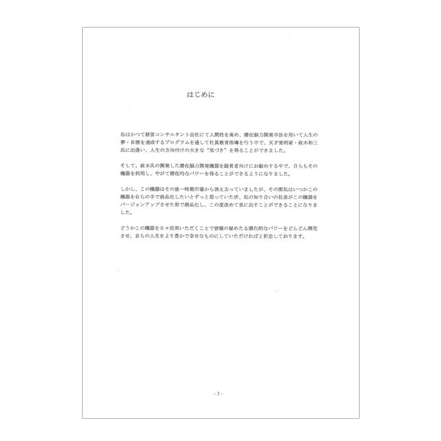 他の画像を見る 聞くだけで脳をシータ波に導いてくれる・発明家政木和三博士が生み出した覚醒装置 スーパーブレインワン・潜在能力開発マシーン(Super Brain1)【充電に便利なUSBハブをプレゼント♪(数量限定)】 マインドフィットネス 【送料無料】 特典付き ¥ 103,620 税込 脳波をα波~θ波にすれば願い事がドンドン叶う! 究極の潜在脳力開発マシーン カートに入れる お気に入りに登録する