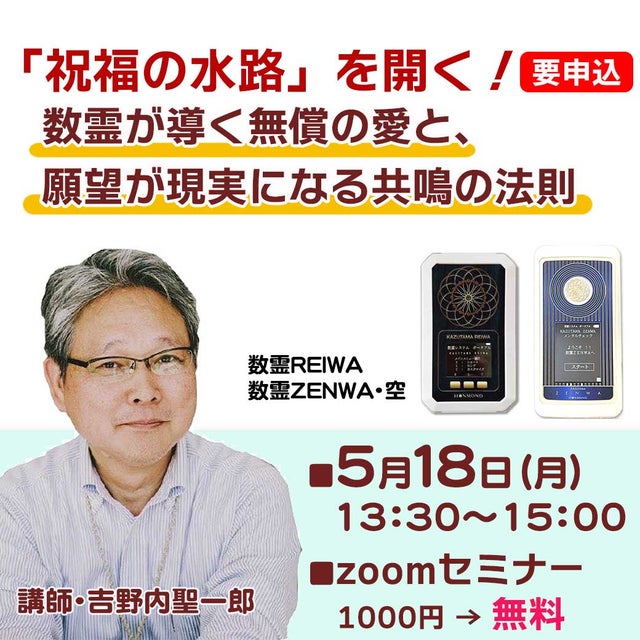 数霊波動研究の第一人者である吉野内聖一郎さんに、「無意識層と願望実現の関係性」を解き明かす、Zoomセミナーを開催することになりました。