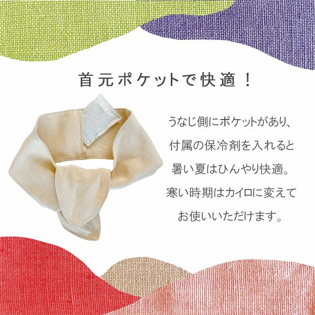 他の画像を見る 首に結ぶだけで、全身がクールダウン! 【ヘンプ100%生地】ヘンプスカーフ 麻素材で夏は涼しく、冬は暖かく【ポケット付き】 ¥ 3,960 税込 オールシーズン快適なヘンプ100%スカーフ。冷却保冷剤とポケットカイロで季節に対応。吸水性・通気性抜群の素材に、国内生産の丁寧な縫製が特徴。天然染料で染めたナチュラルカラーが魅力です。 詳細を見る お気に入りに登録する