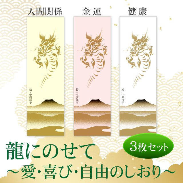 ケビンこと中西研二氏から言葉をもらい、龍体文字で表現した開運しおりです。