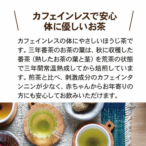 他の画像を見る 葉っピイ向島園 JAS認定 無農薬 「向島園 三年番茶 150g」 ¥ 1,296 税込 皆様が普段ご愛飲される一番茶は、タンニンやカフェインが多く含まれています。 ところが、一番茶に比べてタンニンやカフェインが少ない番茶は、三年間熟成している間に、タンニンやカフェインがさらに抜けてやさしいお茶になります。 カートに入れる お気に入りに登録する
