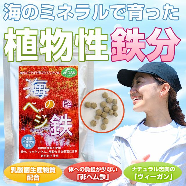 他の画像を見る 植物性鉄分で質の良いサラサラ血液に 海のミネラルで育った植物性鉄分「海のベジ鉄」 ¥ 3,564 税込 アッケシ草を中心に、海と大地の植物を原料にしています。鉄を初めとした現代人が不足しがちなミネラルを補給しましょう。 カートに入れる お気に入りに登録する
