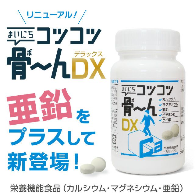 他の画像を見る 骨のチカラが若さの秘訣! まいにち コツコツ骨~んDX(300粒) (こつこつぼーん) ¥ 4,980 税込 骨の衰えは、姿勢の崩れやほうれい線、しわ・たるみにもつながります。「まいにちコツコツ骨~んDX」は、7種類の成分をバランスよく配合し、骨密度を維持しながら健康的な見た目もサポート!加齢による変化が気になる方、いつまでもアクティブに過ごしたい方にぴったりです。今から始める“骨ケア”で、10年後も自信のある自分へ! カートに入れる お気に入りに登録する