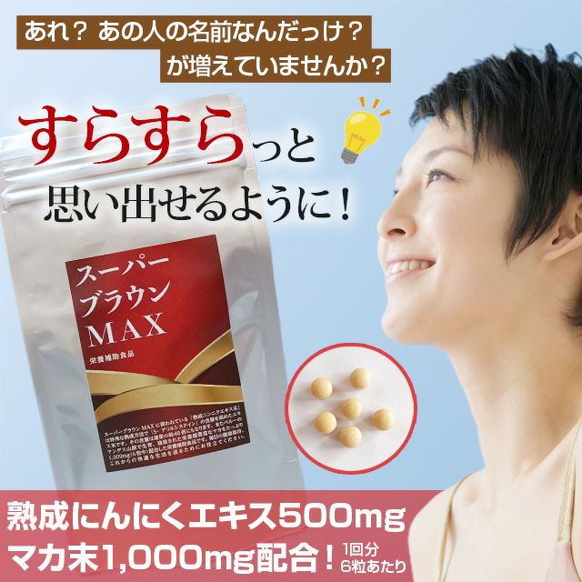 他の画像を見る あれ?あの人の名前なんだっけ?が増えていませんか? スーパーブラウンMAX(180粒)ブラウンニンニク セット割引 ¥ 4,860 税込 〜 ¥ 税込 顔が浮かんでいるのに名前が思い出せない。さっき置いたスマホの場所がわからない…。そんなことが増えていませんか?軽度認知障害(MCI)対策のブラウンにんにくで早目の対策をしましょう! 詳細を見る お気に入りに登録する