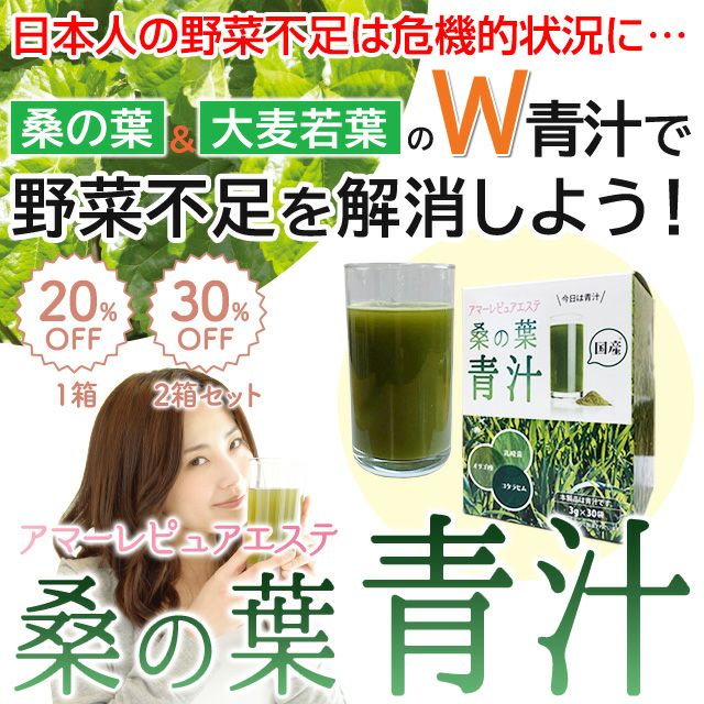 「桑の葉青汁」は、野菜不足を補うために、国産の桑の葉と大麦若葉と2つの青汁を使っています。