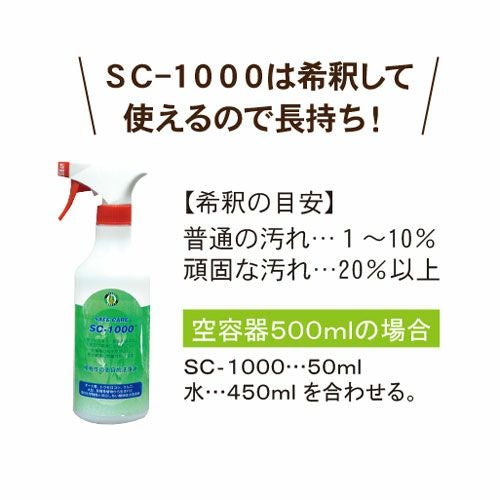 他の画像を見る 【100%天然植物系洗剤セーフケア】 SC-1000用空ボトル(1本) ¥ 770 税込 希釈したSC-1000を入れてご使用ください。この商品は空の容器です(容量500ml)。 カートに入れる お気に入りに登録する