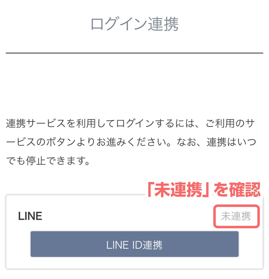 4-6 「未連携」となっていることを確認、ログイン連携解除ができました