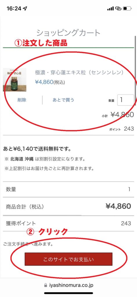 1.マイページにログインし、商品をカートに入れる
