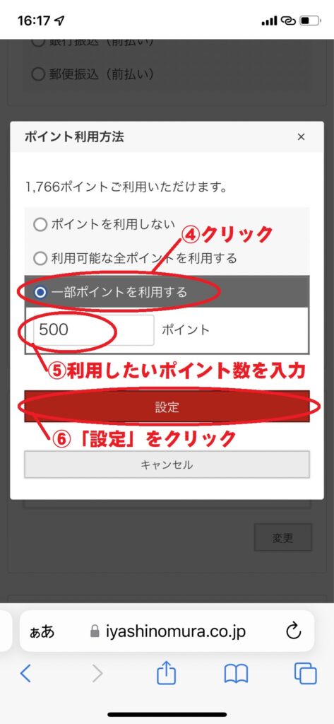 4.一部ポイントを利用するを選ぶ
