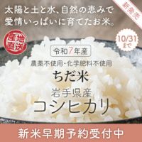 令和7年産【コシヒカリ】ちだ米(玄米・白米)岩手県産 【自然栽培米・農薬不使用】10月下旬より順次発送【新米早期予約10/31まで】