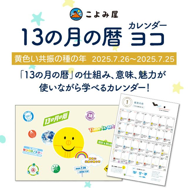 他の画像を見る マヤ暦のリズムでシンクロニシティを起こす 13の月の暦・カレンダー【ヨコ型】 (黄色い共振の種の年 2025.7.26~2026.7.25) 新着 ¥ 1,430 税込 在庫切れ 「13の月の暦」の仕組み、意味、魅力が使いながら学べるカレンダー! 入門的な解説とカレンダーが一緒になっていますので、初心者の方はもちろん、改めて暦を深めたい方にもオススメです。 詳細を見る お気に入りに登録する